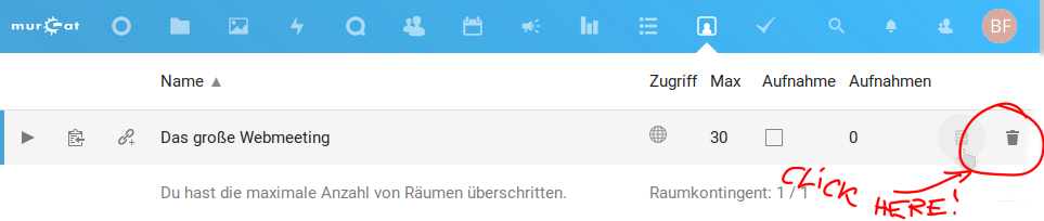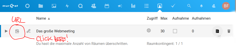Um Dateianhänge in eine Seite einzufügen sollte unbedingt eine Angabe wie attachment:dateiname benutzt werden, wie sie auch in der folgenden Liste der Dateien erscheint. Es sollte niemals die URL des Verweises ("laden") kopiert werden, da sich diese jederzeit ändern kann und damit der Verweis auf die Datei brechen würde.- [laden | anzeigen] (2021-11-12 01:06:54, 38.0 KB) [[attachment:bbb-app-1.1.png]]